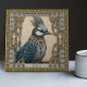 Step into the captivating realm of mystic charm with our enchanting Blue Jay Spirit Animal ceramic tile. The central motif, a majestically adorned blue jay, is bedecked with tribal jewels that sparkle in hues of dark aquamarine and gold. This spirit animal represents a cherished family member, friend, or loved one, watching over you from an otherworldly realm. The bird is encased in a symmetrical harmony of design elements inspired by happycore and carpet punk aesthetics, creating an exhilarating mixture of whimsical cheer and edgy charm. The background sings with a rich altarpiece palette of purple, dark blue, and brown, enhancing the depth and elegance of this unique art piece. As a whimsical touch, a delicately etched butterfly - a symbol of metamorphosis, joy, and life - flutters around the blue jay, a nod to the transformative spirit animal traits. Personalize this tile by adding a name to the specially designed field at the bottom of the artwork. This ceramic tile is not just a décor piece, but a magical keepsake that carries a sense of mystique, love, and an enduring bond.