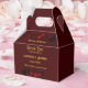 Add a touch of timeless romance to your special day with our Enchanted Elegance Wedding Favour Box. Crafted with love, these elegant boxes feature a rich burgundy background adorned with golden script and a classic red roses. The silhouette of a couple adds a whimsical charm, making it the perfect finishing touch for your wedding favours or thank-you notes. Customize with your names and wedding date to create an unforgettable keepsake that celebrates the beginning of your happily ever after.