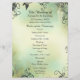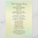 Tasteful wedding ceremony program designed on a soft blue, green and cream watercolor background and deco swirl pattern in dark grey text lettering. Accented with a simple white wedding lantern in the background. Double sided design with ceremony on front and bridal party details and thank you text on the back. All text is formatted and ready for you to simply replace or remove where needed in the "Personalize this template" button. You can customize further in that bottom link. Coordinates with the formal invitation and a whole wedding stationery collection at Monograms and Monikers on Zazzle. More items shown with this design.