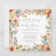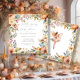ENCHANTED FAIRIES FALL AUTUMN FLORAL BABY SHOWER - Light and airy white background version | Colourful fairy garden flowers in a border of warm autumn colours of amber, peach, and dusty blue with fall leaf foliage. On the reverse side is the same image with an adorable fairy A complete set of products are available for purchase in the collection. MSP0114