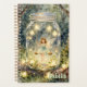 A beautiful fairy tale themed personalized planner. The lovely illustration has a fairy girl swinging on a magical swing inside a mason jar in an enchanted garden in the forest. Fairy lights adorn the trees and swing. The other side has a fairy on a swing in an enchanted forest.