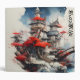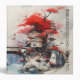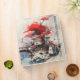 This image depicts a fantastical scene of a house built around and within a large, vibrant red tree. The house features multiple levels and architectural styles, including a lighthouse-like tower. A bridge arches over a serene body of water, connecting to the house. The setting is whimsical and dreamlike, with the red foliage contrasting against the muted background. The Japanese text on the left reads "私の家族" (My Family), and the text on the right translates to "Family is not just important, it is everything." This enchanting image blends natural and architectural elements, creating a sense of wonder and imagination. It's perfect for a 3-ring photo album binder, capturing the magical essence of treasured family memories.