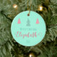 Crafting Memories in Mint Green! Celebrate your little one's inaugural holiday with our 'Enchanted First Christmas' ornament. The mint green canvas provides the perfect backdrop for the enchanting message 'My First Christmas,' adorned with the name of your baby, like the delightful Elizabeth. Two rosy trees and one green tree dance above the text, creating a whimsical scene. Flip the ornament to reveal a plethora of pink trees, capturing the joy of the season. This isn't just an ornament; it's a treasured memory, an elegant mint-green canvas awaiting the details of your unique holiday story. Welcome 2024 with this unique, stylish, and retro addition to your festive decor. Order now for an artistic and trendy keepsake! 🌲✨