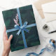 Enchanted Foliage: Green Leaves on Dark Blue Wrapping Paper