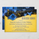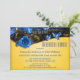 Rehearsal dinner invitation featuring an enchanted forest scene with butterflies at night in beautiful ochre and midnight blue colours.