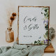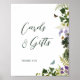 Wedding cards and gifts poster with an enchanted forest theme with vintage butterflies, fern and purple flowers.