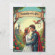 This elegant fairytale-style birthday invitation is perfect for a modern birthday. The retro design features a vintage enchanted forest, a castle illustration, and black calligraphy on a storybook-themed background.