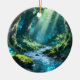 Beautiful enchanted forest ceramic ornament featuring a dreamy woodland scene with glowing water, sun rays, mossy trees, and a magical fantasy atmosphere. Perfect for holiday decor, Christmas trees, nature lovers, fantasy fans, and elegant seasonal decorations. A peaceful and enchanting design that adds a soft magical touch to any space.