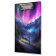 Take a stroll through this enchanted forest on a foggy night under the scintillating, falling stars and the dancing Aurora Borealis, otherwise known as the Northern Lights. The hillsides are cloaked in the glow of halos cast beneath them by the old-fashioned oil lamps lining the pathways that wind through the rolling hills. The never-ending glow from the sky and oil lamps are reflectively rippling on the pathways that are still wet from the morning rain.