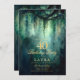 A whimsical watercolor illustration of lush foliage in emerald green, sparkling with fairy lights and magic dust, decorates this 40th birthday invitation with an enchanted forest theme. An elegant, modern invitation for a fairytale celebration. Perfect for women who love the fairytale forest setting, the fairy forest or fairy garden theme and emerald green.