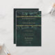 An illustration of wild flowers, branches and foliage in a garland arrangement with gold accents and fairy lights (these are digital effects!), over a glittering emerald green background, decorates this spring summer fall and winter wedding invitation with an enchanted forest wedding theme. An elegant, modern invitation for a fairytale wedding, it is the perfect wedding invitation for brides who love the fairytale forest setting, the fairy forest or fairy garden theme and emerald green with gold accents. The modern and simple wedding typography is sprinkled with classic wedding calligraphy accents for an elegant touch. A faux gold small frame at the top showcases the names.