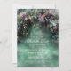 A whimsical watercolor illustration of lush foliage in emerald green, sparkling with fairy lights and magic dust and a hint of lavender, decorates this spring summer fall wedding save the date invitation with an enchanted forest theme. An elegant, modern save the date for a fairytale wedding. Perfect for brides who love the fairytale forest setting, the fairy forest or fairy garden theme and emerald green with a touch of lavender, lilac or purple.
