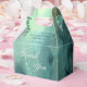 A whimsical watercolor illustration of lush foliage in emerald green, sparkling with fairy lights and magic dust, decorates this elegant, simple, classy and modern wedding favour box with an enchanted forest theme. Luxurious but simple, classic but chic, modern but timeless. An elegant, modern wedding favour box for a fairytale wedding. Perfect for brides who love the fairytale forest setting, the fairy forest or fairy garden theme and emerald green.