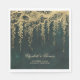 A whimsical watercolor illustration of lush foliage and vines layered digitally with gold (not real foil) over an emerald green background, sparkling with fairy lights and magic dust, decorates this winter spring summer fall wedding napkin with an enchanted forest theme. An elegant, modern invitation for a fairytale wedding. The classic wedding calligraphy for the names add an extra elegant touch. Perfect for brides who love the fairytale forest setting, the fairy forest or fairy garden theme and emerald green.