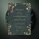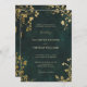 An elegant, modern wedding invitation featuring a minimal illustrated frame of tree branches lush, wild greenery and cascading foliage. Digitally layered with accents of shimmering gold over a glittering emerald green background, this invitation captures the essence of an enchanted forest for any season—spring, summer, fall, or winter. With a touch of sophisticated modern calligraphy, it’s the ideal choice for brides dreaming of a fairytale forest wedding, a magical woodland celebration, or a fairy garden setting. This invitation is perfect for anyone inspired by the rich beauty of an emerald green, fairy-tale forest theme.