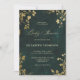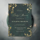 A whimsical, minimal frame of lush foliage, sparkling with fairy lights and magic dust, layered with a gold effect (this is a digital effect, not real foil or glitter!) decorates this spring summer fall winter neutral baby shower invitation with an enchanted forest theme and an emerald green background. An elegant, modern invitation for a fairytale baby shower. Perfect for moms and parents who love the fairytale forest setting, the fairy forest or fairy garden theme and emerald green, and who want a gender neutral celebration.