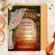 A post or after wedding party invitation featuring a gate leading to a mystical light in the enchanted forest. With a romantic framing wedding veil with roses and a lantern. Great for a reception only or after-the-wedding celebration.