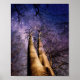 This design features a beautiful image of two tall trees rising up into the sky, surrounded by other trees in a forest. The scene is set at night-time when everything looks particularly magical and enchanting. There is a flock of birds in flight overhead. The sky is made up of a beautiful mixture of purple and blue; it is dotted with bright white stars.