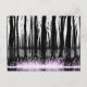 Venture into a realm of ethereal beauty with this enchanting forest scene. A dense grove of stark black trees stands silhouetted against a pale, moonlit sky. Delicate white petals, like snowflakes, cascade through the air, adding a touch of whimsy to the scene. The forest floor is awash in a sea of vibrant purple blossoms, creating a striking contrast against the dark trunks. The overall effect is one of mystery and intrigue, inviting you to lose yourself in the magic of the woods.