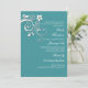 This elegant and lovely adult invitation is suitable for just about any occasion. The turquoise-blue background features a white decorative flourish made of whimsical flowers and swirls.