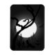 Enchanted forest Halloween night, a black and grey silhouette painting with flying bats and a snake in the tree view