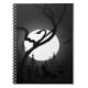 Enchanted forest Halloween night, a black and grey silhouette painting with flying bats and a snake in the tree view