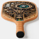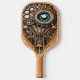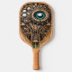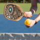 A pickleball paddle adorned with a mesmerizing green eye, a unique and mystical design that catches the eye.