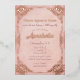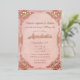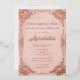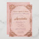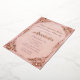 This enchanting custom invitation features a beautiful fairy tale theme. The background is a faded pink paper pattern that resembles the pages of an old book. An ornate, shiny antique frame of real rose gold borders the invitation. The iconic enchanted fairytale phrase "Once upon a time" is printed in a matching rose gold foil.