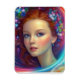 This stunning digital artwork features a mystical woman with radiant blue eyes and flowing rainbow-coloured hair adorned with glowing flowers and stars. The vibrant, dreamy design merges fantasy and beauty, perfect for fans of magical aesthetics, fairycore, and ethereal art.