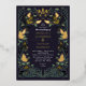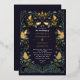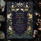 Elegant, whimsical, and gothic wedding design perfect for either an enchanted forest-themed celebration or a moody and dark gothic affair. This design features ravens set in a frame of green thorns, berries, lilacs, and gold accents against a dark purple background. Matching Items in our shop for a complete party theme.