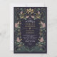 Elegant, whimsical, and gothic wedding design perfect for either an enchanted forest-themed celebration or a moody and dark gothic affair. This design features ravens set in a frame of green thorns, berries, lilacs, and gold accents against a dark purple background. Matching Items in our shop for a complete party theme. Please note that the gold on the invitation is NOT real foil and is printed in flat colours