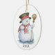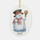 Beautiful painted enchanted Christmas snowman with red and white pattern backing, customize with year. Designed to match our Enchanted Christmas Collection.