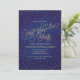 Shimmery gold glitter effect polka dot stars sparkle in confetti clouds against an enchanting blue and purple watercolor sky background in this New Year's Eve Party Invitation, with a gold glitter effect script reading, "New Year's Eve Party". Perfect for a fancy chic night-time soiree! Original artwork by Colleen Michele. Please note, there is not a real gold glitter or gold leaf effect on the stars and script; no actual glitter, gold leaf or metallic ink will be used in this invitation.