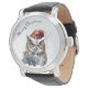 Add a sophisticated and personalized touch of holiday magic to his wrist with our "Enchanted Christmas Owl" customizable watch for men. This distinguished timepiece features a delightful watercolor illustration of a Christmas owl, adorned with a festive red hat, prominently displayed on the watch face. This enchanting owl brings a whimsical and joyful spirit to his daily ensemble.