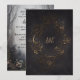 This dark and moody enchanted forest design features a whimsical bird and floral and fauna to reflect a romantic feel.