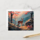 Enchanting Autumn Deer Forest Scene Design Postcard