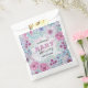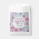 Celebrate the arrival of a new bundle of joy with this exquisite baby shower favour bag, perfect for sharing your happiness with friends and family. The bag features a delicate hand-drawn floral pattern with a soft pastel palette, creating a sense of elegance and serenity. The intricate design showcases a variety of blooms and foliage, interwoven in a harmonious display of purple, pink, blue, and green hues.