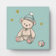 Enchanting children's room design. It features charming illustrations of little teddy with a bonnet. Background light green.