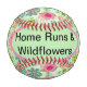 The baseball showcases a beautiful array of flowers set against its classic surface, accompanied by the fun text "Home Runs & Wildflowers." This playful phrase reflects the joy of the game while celebrating the beauty of nature.