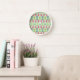 Floral Motifs: The clock showcases an array of diverse flowers in soft pastel colours, including pinks, light blues, yellows, and greens, creating a cheerful and inviting atmosphere.