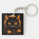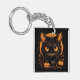 Enchanting Halloween: Black Cat Among Pumpkins Keychain