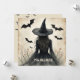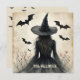 This flat Halloween greeting card is a delightful blend of whimsy and charm, perfect for celebrating the spooky season. The front of the card features an enchanting image of a witch, complete with a pointed hat and flowing dress, standing against a backdrop reminiscent of aged parchment. Above the witch, a group of bats takes flight, adding to the Halloween ambiance. The whimsical text “This Halloween…” invites curiosity and sets the tone for the festive message on the back.