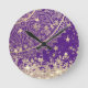 Enchanting Mandala with Gold Stars on Purple Round Clock