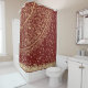 A stylish ornate gold lotus mandala on a red backdrop with golden stars raining down on the bottom where there is a glittery gold edging for extra glam. Whimsical fantasy vibes.