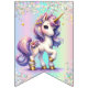 Add a magical touch to your party décor with this charming unicorn-themed bunting banner! Featuring pastel-coloured flags, adorable unicorn designs, and a rainbow, this 'Happy Birthday' banner is perfect for creating a festive atmosphere at any unicorn-themed celebration. The glittery accents and whimsical details will make your party space sparkle and shine. Hang it over the party table, entryway, or as a photo backdrop to make your child's birthday extra special!