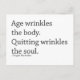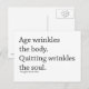 Age wrinkles the body. Quitting wrinkles the soul. Motivational quotation from Douglas MacArthur is here to encourage you. Postcard