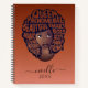 This design features "Queen, phenomenal, beautiful, smart, magic, boss, loving, sexy, independent, funny, creative, and strong" nested in her afro, with layered necklaces on a copper brown background.