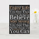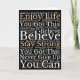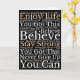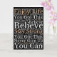 Send someone special encouraging positive vibes with this Wordart pattern of inspirational motivational phrases such as Enjoy Life, you Got This, You Can, Believe, Stay Strong, Never Give Up, in white and brown typography on black, on the front. Inside, easily personalise with your greeting.