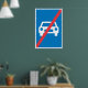 Decorate your garage, office, or bedroom with this high quality end of motorway traffic sign poster. This wall art features the bold blue rectangle and red slash symbol in a crisp, high resolution format that adds a modern industrial feel to any room. It is a great conversation piece for car enthusiasts, urban planners, or anyone who enjoys the iconic look of international road signage.