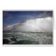Niagara Falls (Cayuga: Gahnawehtaˀ or Tgahnawęhtaˀ[1]) is the collective name for three waterfalls that straddle the international border between the Canadian province of Ontario and the U.S. state of New York. They form the southern end of the Niagara Gorge. From largest to smallest, the three waterfalls are the Horseshoe Falls, the American Falls and the Bridal Veil Falls. The Horseshoe Falls lie on the Canadian side and the American Falls on the American side, separated by Goat Island. The smaller Bridal Veil Falls are also located on the American side, separated from the other waterfalls by Luna Island. The international boundary line was originally drawn through Horseshoe Falls in 1819, but the boundary has long been in dispute due to natural erosion and construction.[2] Located on the Niagara River which drains Lake Erie into Lake Ontario, the combined falls form the highest flow rate of any waterfall in the world, with a vertical drop of more than 165 feet (50 m). Horseshoe Falls is the most powerful waterfall in North America, as measured by vertical height and also by flow rate.[3] The falls are located 17 miles (27 km) north-northwest of Buffalo, New York and 75 miles (121 km) south-southeast of Toronto, between the twin cities of Niagara Falls, Ontario, and Niagara Falls, New York. Niagara Falls were formed when glaciers receded at the end of the Wisconsin glaciation (the last ice age), and water from the newly formed Great Lakes carved a path through the Niagara Escarpment en route to the Atlantic Ocean. While not exceptionally high, the Niagara Falls are very wide. More than 6 million cubic feet (168,000 m3) of water falls over the crest line every minute in high flow,[4] and almost 4 million cubic feet (110,000 m3) on average. The Niagara Falls are renowned both for their beauty and as a valuable source of hydroelectric power. Managing the balance between recreational, commercial, and industrial uses has been a challenge for the stewards of the falls since the 19th century.